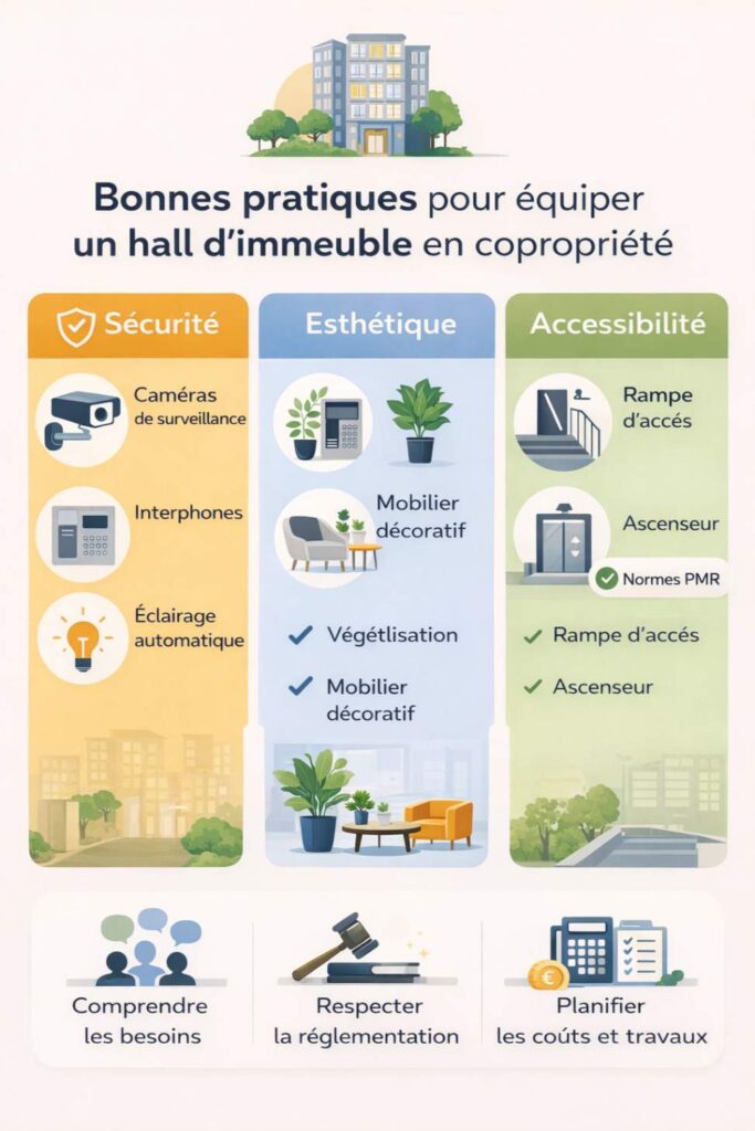 L’équipement du hall d’un immeuble en copropriété est soumis à un ensemble de règles et de lois qui visent à protéger aussi bien les copropriétaires que les occupants.