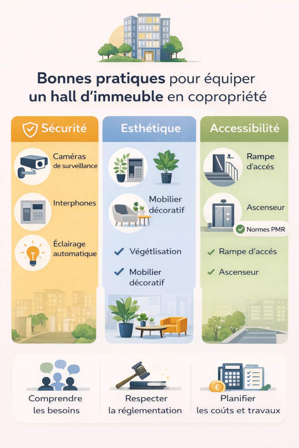 Un projet bien planifié est la clé d’une réalisation harmonieuse et d’un hall qui répond aux attentes de tous les copropriétaires.