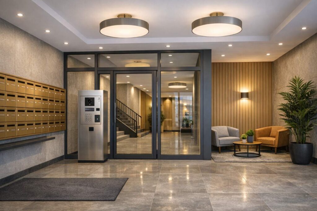 - Sécurité : Les systèmes de vidéosurveillance, interphones et serrures électroniques sont des investissements clés pour un hall fonctionnel et sûr.