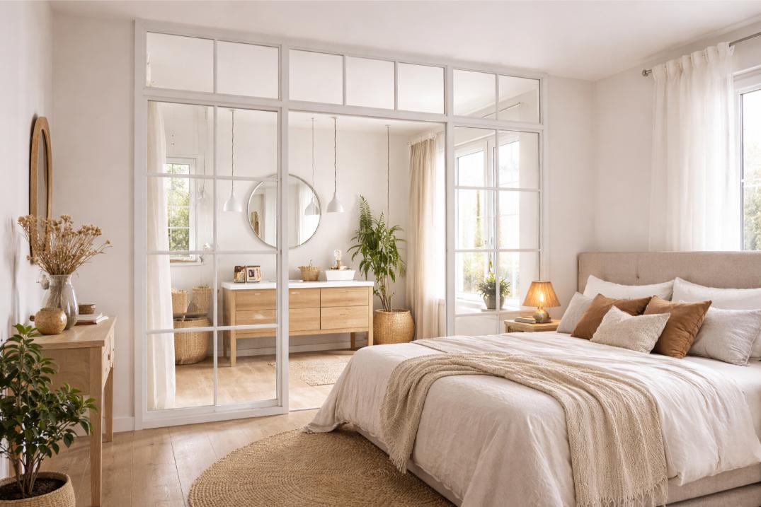 Inspirée des ateliers d’artistes, la verrière apporte une touche industrielle très tendance. Sa structure en métal, souvent noire, s’intègre parfaitement dans des décors contemporains, mais aussi dans des ambiances plus classiques ou éclectiques.